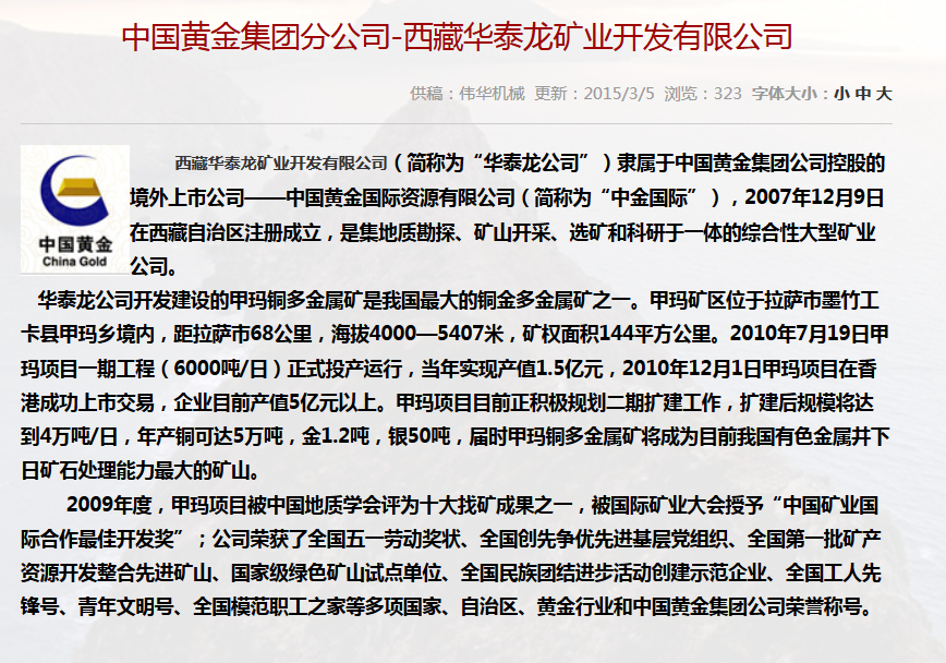 合作單位:中國(guó)黃金集團(tuán)分公司-西藏華泰龍礦業(yè)開(kāi)